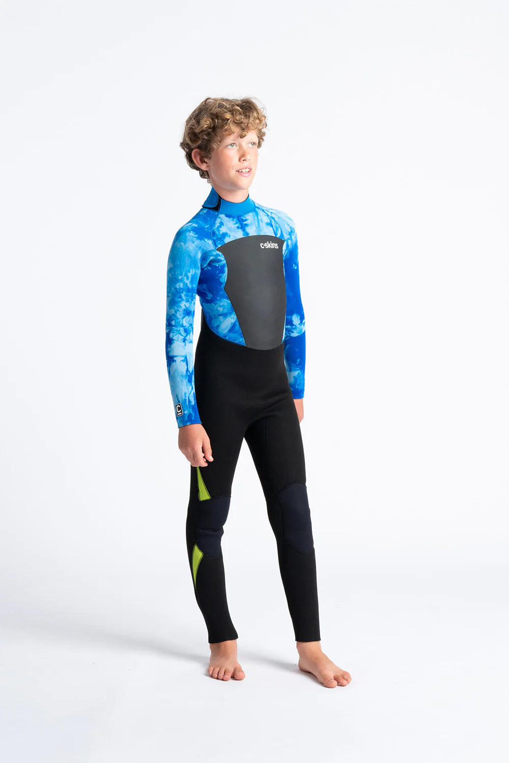 C-Skins Legend 4:3 Junior GBS Back Zip Steamer - Black / Blue Tie Dye / Lime