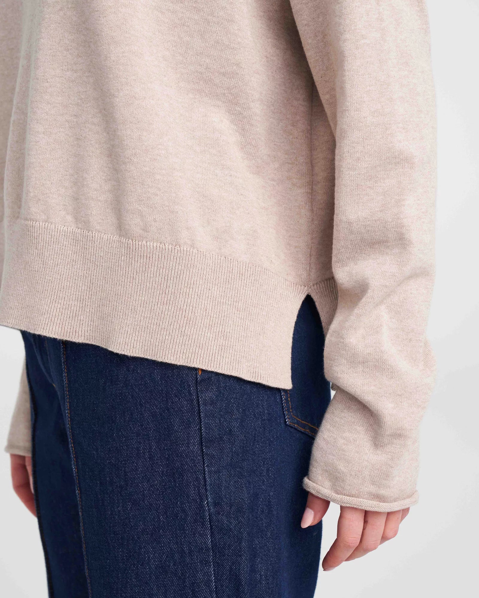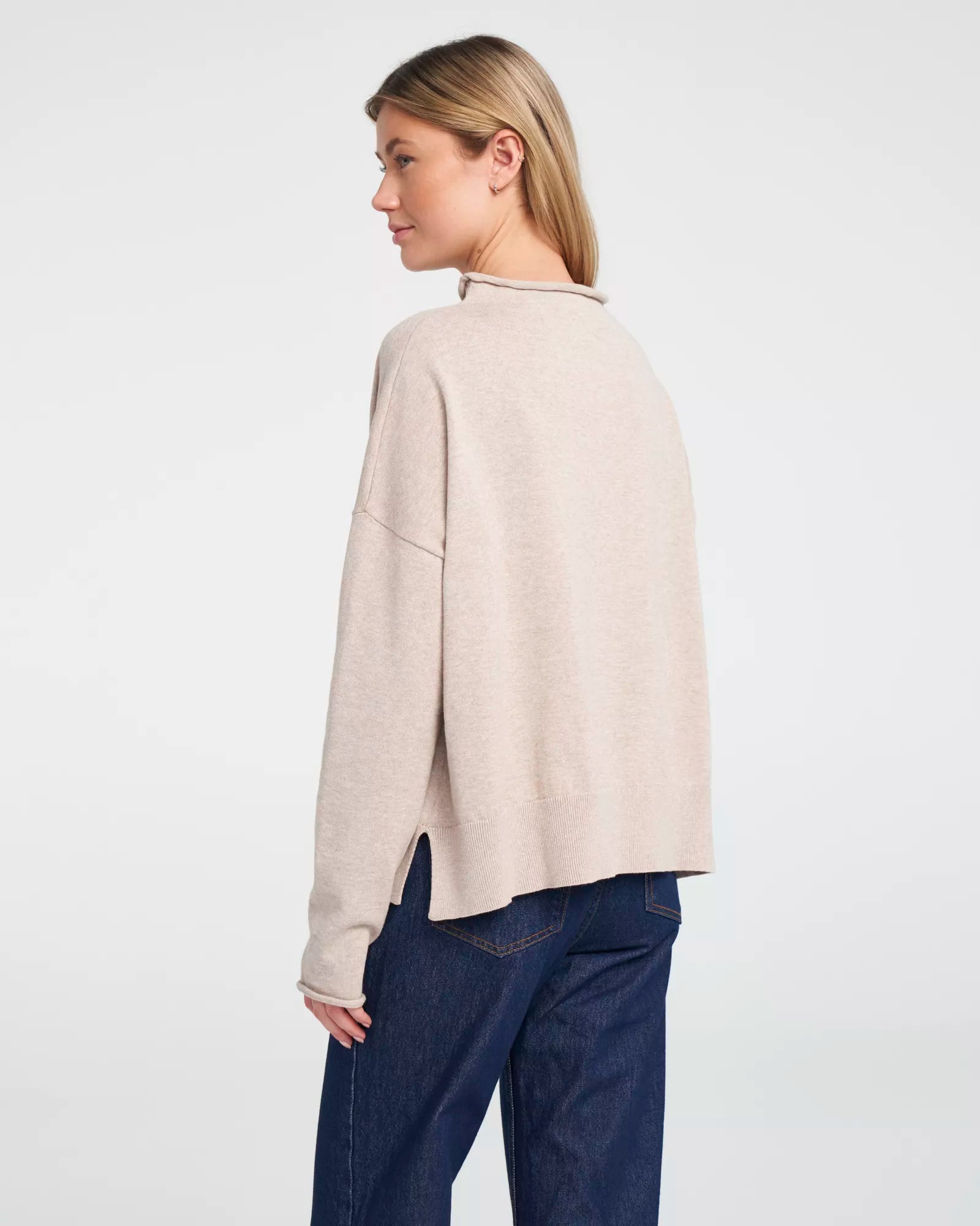 Finely knitted sweater in 100% cotton with turtle neck and ribbed hem. Dropped shoulders, boxy fit and slits in the sides. A perfect basic piece! Sustainably produced in Europe.