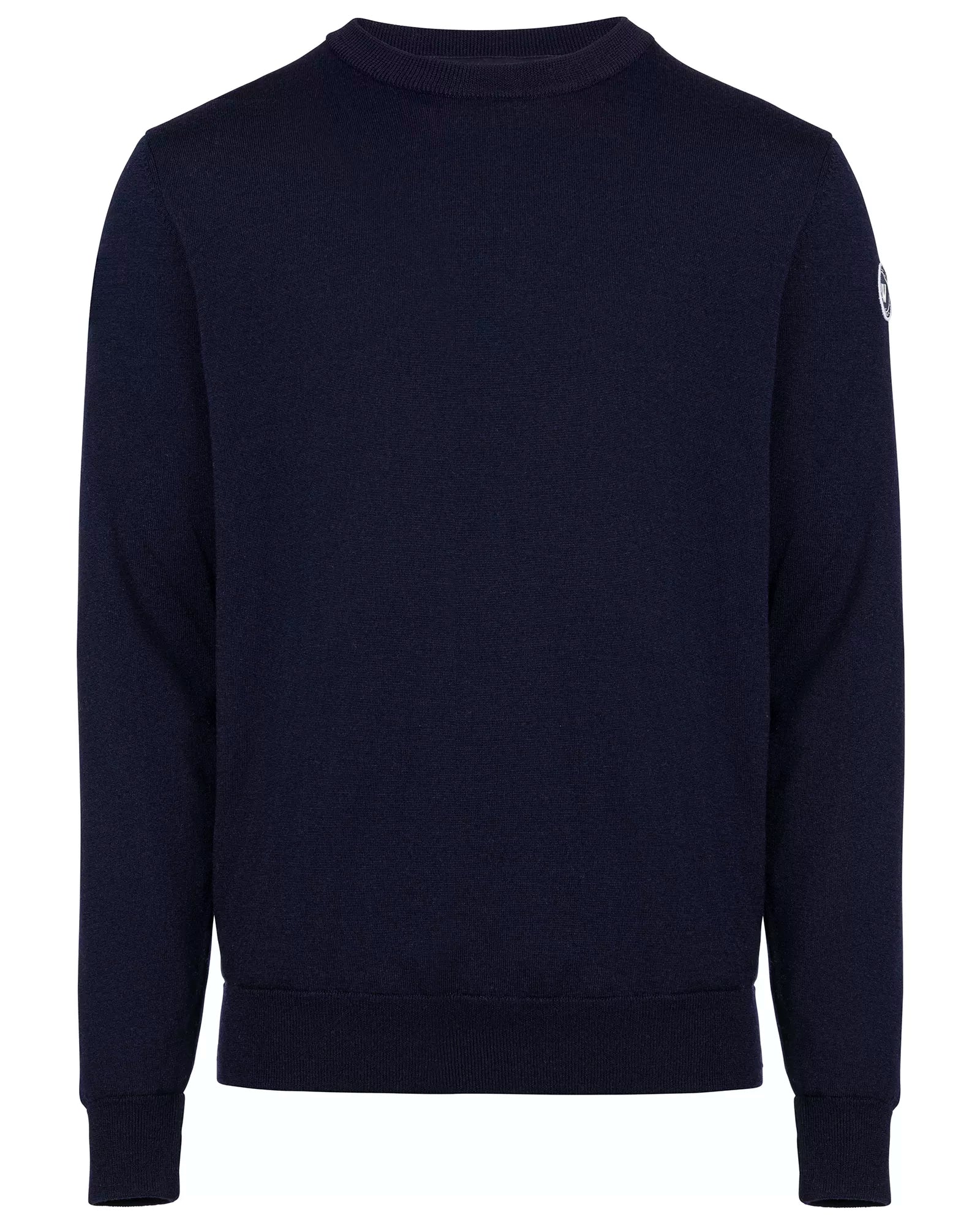 Knitted windproof sweater in 100% extra fine merino wool. Thin knit and soft feeling with ribbed ending. This sweater is perfect as a mid layer and very suitable on the golf course.