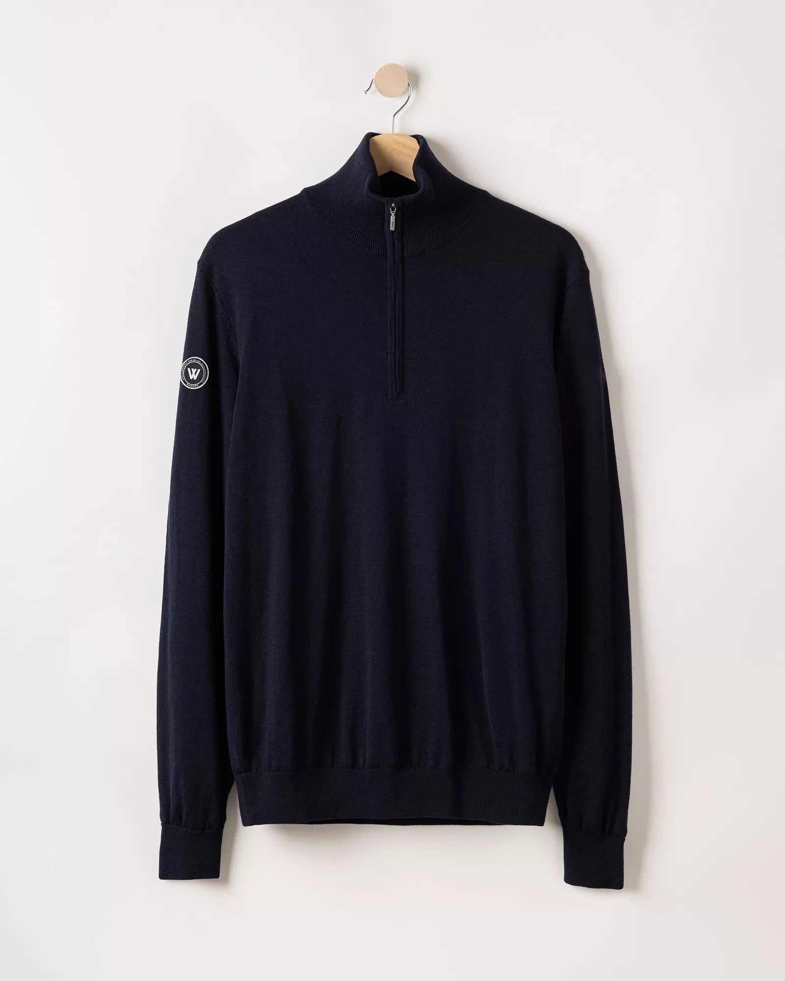 Windproof lined plain knit sweater with collar made of 100% extra fine merino wool. Fine knit, regular fit and ribbed collar with zipper. Ribbed cuffs at the end. Suitable as a midlayer but also for light outdoor activities such as golf. The sweater has a windproof stretchy lining consisting of 96% polyester and 4% elastane. No chemicals are used to achieve the windproof function. Instead, the lining is manufactured with a special weaving technique that makes the fabric extremely tightly woven and therefore also windproof, while the fabric is breathable. The elastane makes the fabric stretchy, which means that it stops the wind but not movement. The lining is labeled with ÖKO-tex® Standard 100, which guarantees that the fabric is free from harmful substances. Sustainably produced in Europe.