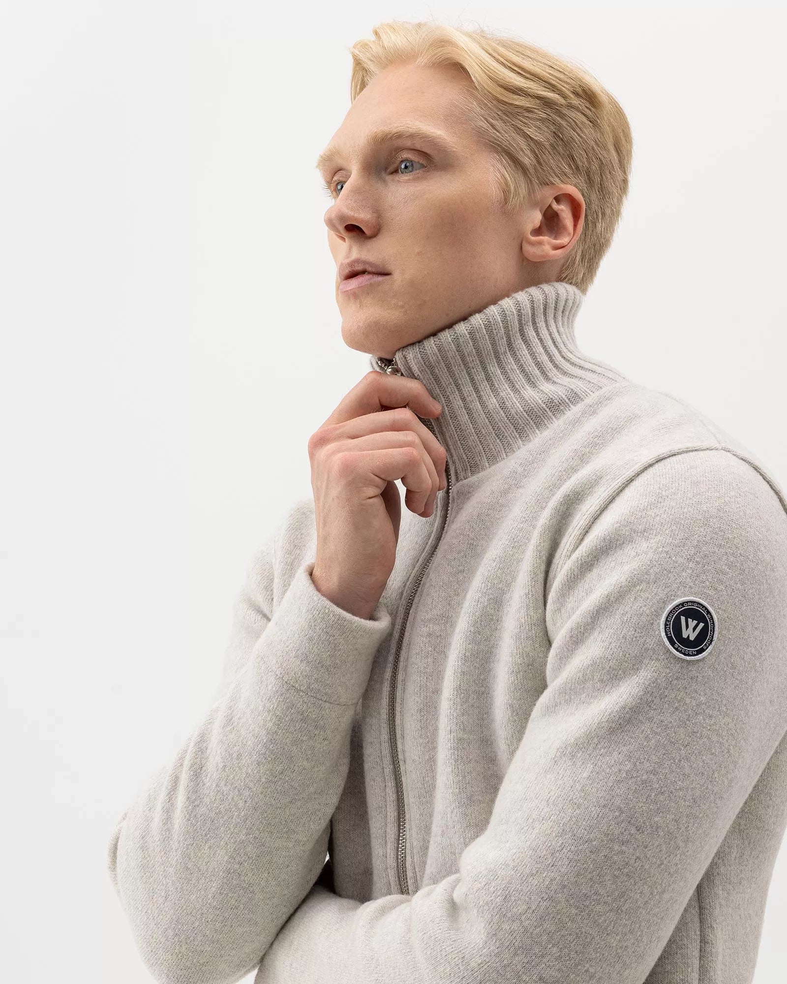 Knitted windproof sweater in a wool blend. Sturdy two-way zipper and zippered pockets. High ribbed collar with knitted cotton on the inside for extra comfort. Regular fit. The sweater has a windproof lining that consists of 96% polyester and 4% elastane. No chemicals are used to achieve the windproof function. Instead, the lining is manufactured with a special weaving technique that makes the fabric extremely tightly woven and therefore also windproof, while the fabric breathes. The elastane makes the fabric stretchy, which means that it stops the wind but not movement. The fabric is labeled with ÖKO-tex® Standard 100, which guarantees that the fabric is free from substances harmful to health.