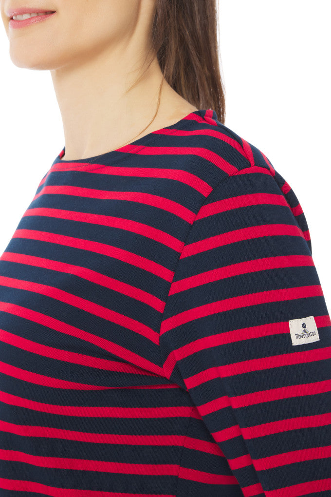 Embrace the timeless elegance of the Mousqueton Marinella-B Mariniere in Marine/Chili—a modern twist on the iconic Breton shirt. Crafted in 100% soft, durable cotton, this long-sleeved marinière offers the perfect balance between coastal tradition and contemporary flair, thanks to its meticulously placed stripes in deep navy and vibrant chili red. The flattering, subtly tailored cut ensures comfort and freedom of movement, while the elegant boat neckline and refined finishing details elevate your look whether you’re strolling the seaside or navigating the city. Designed for both versatility and enduring style, the Marinella-B is a must-have for any wardrobe seeking a dash of French maritime character with a bold, modern edge.