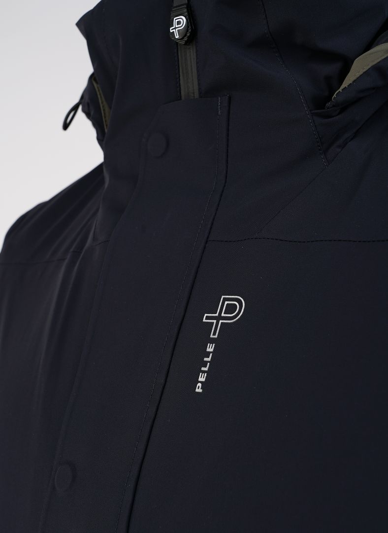This parka is made of wind- and waterproof, breathable material with Hi:RES® 15T2L stretch membrane. The parka features 4-way stretch, taped seams, quilted lining, and a PFC-free DWR treatment. It is also equipped with recycled polyester padding, YKK VISLON AquaGuard® water-resistant two-way zippers at the front and pockets, a detachable hood, adjustable sleeve openings and hood with bonded adjusters. Raised Pelle P logo details are featured on the chest and hood, with a rubber badge on the left sleeve.