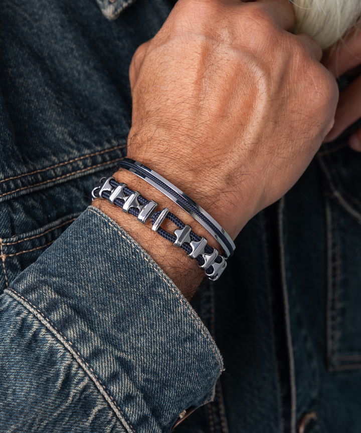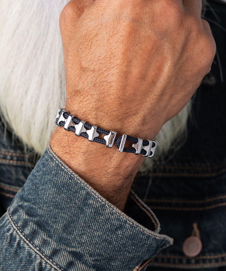 Bold Bob is armed with distinctive shields (11mm) and a recognizable t-clasp made of the strongest marine-grade stainless steel. Bob also features the best marine rope (3mm) available, for a stylish, nautical look. Is wear-resistant and does not tarnish.